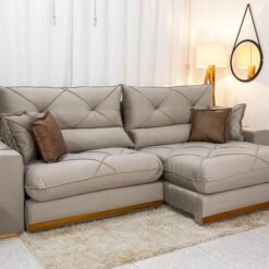 Sofá Retrátil Reclinável Gran Bello 2.90m Veludo Capuccino – Molas Ensacadas