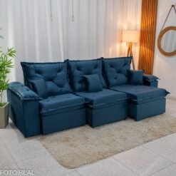 Sofá Retrátil Reclinável Gran Bello 2.50m Veludo Azul 03 – Molas Ensacadas Pocket