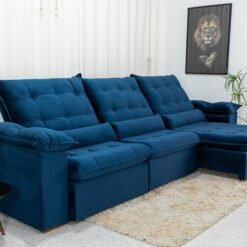 Sofá Retrátil Reclinável Atenas 2.70m – Azul Veludo