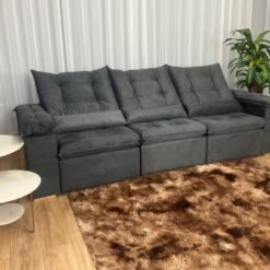 Sofá Retrátil Reclinável Atenas 2.70m – Cinza Veludo