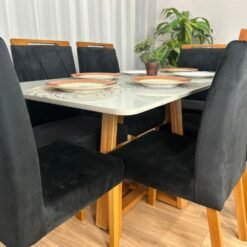 Mesa de Jantar Bali 1.60×0.80 Com 6 Cadeiras Isa – Cinamomo/Off White/Preto Veludo